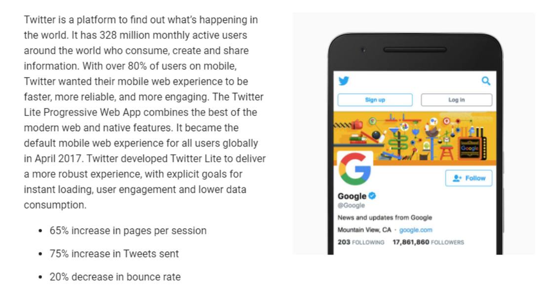 参考:Google Developers「Twitter Lite PWA Significantly Increases Engagement and Reduces Data Usage」