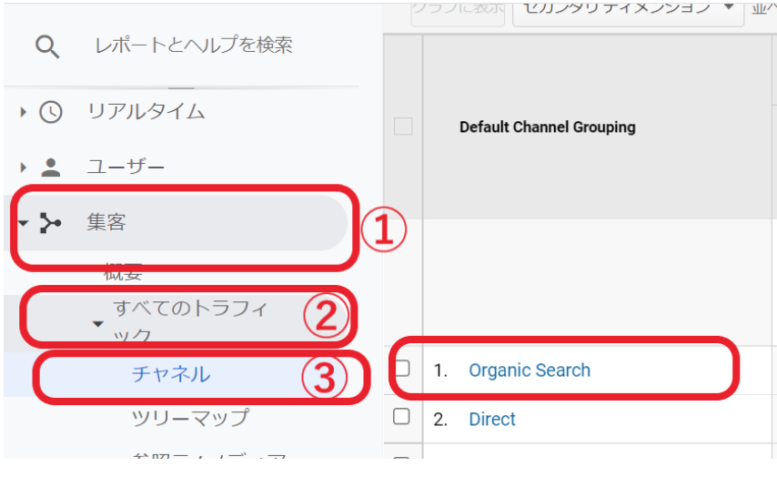 | Step.3 | チャネルからオーガニック検索流入を確認 |