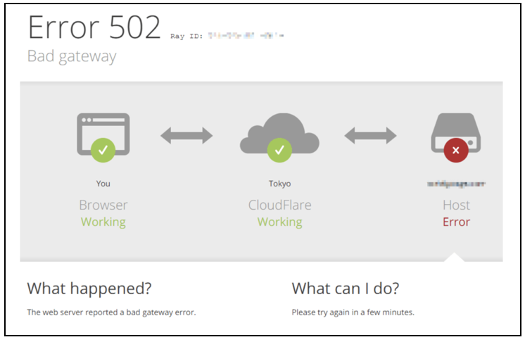 もし、「502エラー」が表示された場合は、以下の原因を考えてみましょう。