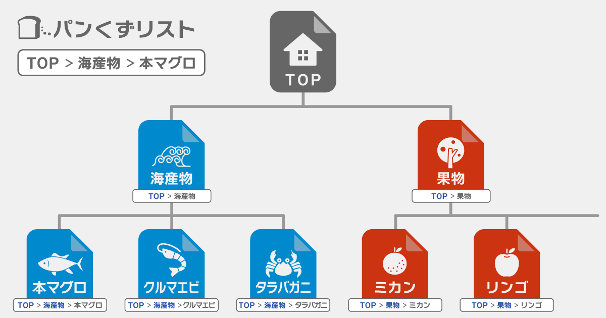 サイトはページ数が多くなるほど複雑になり、パンくずリストを最適に保つことが難しくなります。しかし、ページ数が多くても階層構造がわかりやすければ、パンくずリストもわかりやすくなり、ユーザーにも使いやすいサイトになるのです。関連のあるコンテンツをカテゴライズして整理するなど、わかりやすい構造設計を心がけましょう。