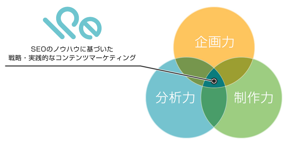 ipeのコンテンツマーケティングの強みは、「戦略・実践的なコンテンツマーケティング」であること。あらゆるクライアントのコンテンツマーケティングにも柔軟にかつ、成果の見える企画・制作を実行できるところです。