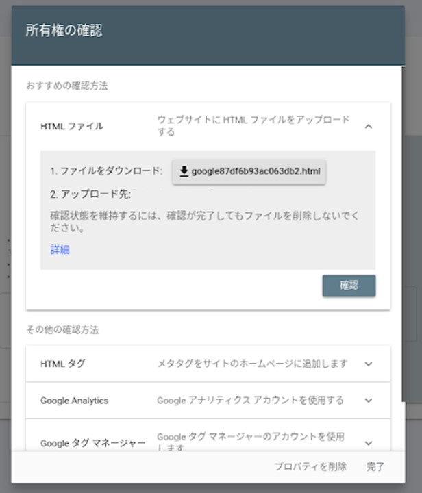 Googleサーチコンソールの所有権の確認方法は下記の5つです。